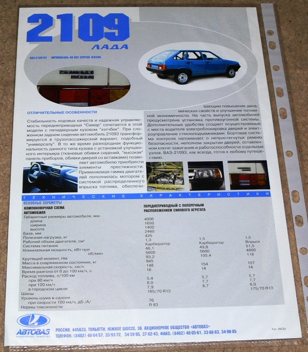 Lada 2109-93 Samara – 2000 RU 2014-08-182015-09-06 / kozantal Kiadvány: típuslap Terjedelem: 1 oldal Méret: A4 Állapot: 99% Kiadás/Évjárat: AvtoVaz 2000-2002 Moszkvai Autókiállítás Nyelv: RU ÁRA: 1.500HUF Megosztás: Click to share on X(Új ablakban nyílik meg) X Facebookon való megosztáshoz kattintás ide.(Új ablakban nyílik meg) Facebook Tetszik Betöltés... Kapcsolódó bejegyzések