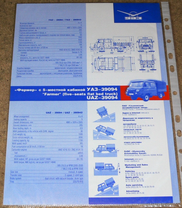UAZ 39094 Farmer Double-Cab – 2000 RU-ENG 2014-08-192015-09-06 / kozantal Kiadvány: típuslap Terjedelem: 1 lap / 2 oldal Méret: A4 Állapot: 99% Kiadás/Évjárat: UAZ, 2000-2001 (MIMS) Moszkvai Autókiállítás Nyelv: RU-ENG ÁRA: 1.500HUF Megosztás: Click to share on X(Új ablakban nyílik meg) X Facebookon való megosztáshoz kattintás ide.(Új ablakban nyílik meg) Facebook Tetszik Betöltés... Kapcsolódó bejegyzések